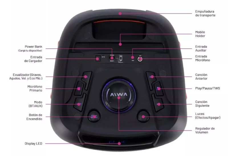 Bafle Aiwa Aw-T806F-Pb 6.5" X2 Twiter 1X1" 8000W Pmpo Bluetooth/Bat 3600 Mah/Tws