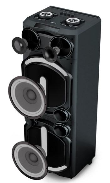 /Llevá tu fiesta a todos lados!! PARLANTE ACUSTICO TAX5708/77 PHILIPS - Party Speaker Bluetooth - Diseño Carry On con Ruedas - Potencia 400W RMS - 2x Woofer 12" - Consola superior para regular volumen,ecualizador y luces - Entrada para Micrófono y Guitarra - Función karaoke - Radio FM - Luces rítmicas - Alcance Bluetooth: 10 metros