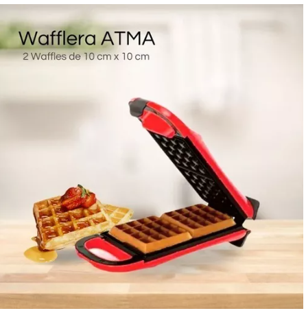WAFLERA ATMA WA8110RP ANTIADHERENTE/650W/CAPAC. 2 UNID/COLOR ROJO