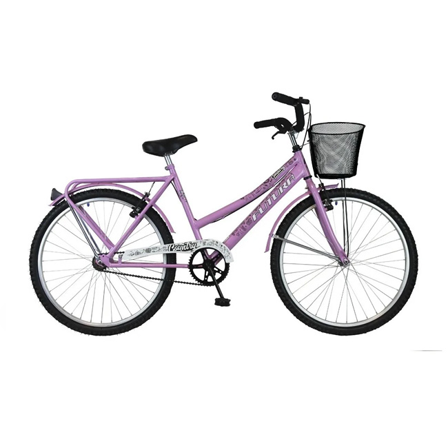 Modelo COUNTRY Rodado 26 Bicicleta de paseo para dama 26 con canasto modelo Country /Cuadro oversize 50 mm /Llantas de aluminio /Grip en todo el manubrio /Portaequipaje soldado /Stem 4 tornillos /Pie lateral /Guardabarros de metal /Asiento supersoft /Reflectores de seguridad en pedales/guardabarros/ruedas /Juego de direccion neco