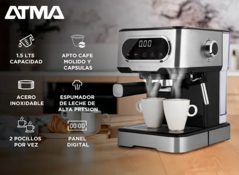 Cafetera Atma Ceat5403Gp Express 20 Bares/Acc Para Cafe Molido Y Capsulas Nespresso
