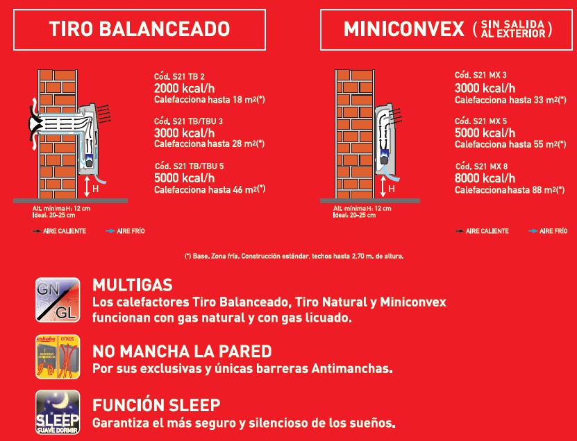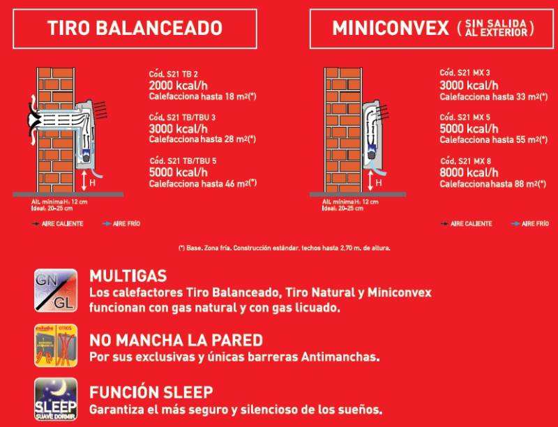 El Calefactor Eskabe S21 TB 3 MF 100% seguro No Mancha la Pared Diseño compacto Rejilla indeformable de acero templado.Con accesorio de ventilación resistente a vientos extremos Diseño compacto Apto para ventilación vertical (Sistema TBU) Multigas