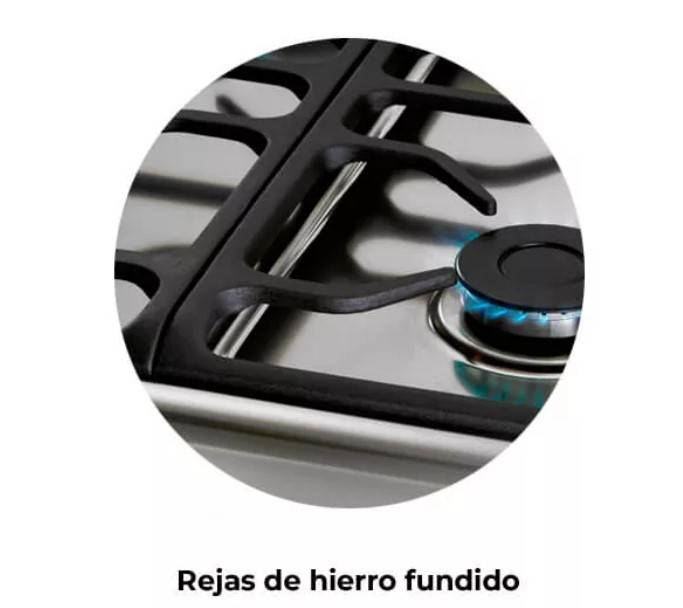 Eficiencia energética AA. Multigas. Horno Autolimpiante. 4 hornallas de tres diferentes potencias para optimizar su uso. Plancha acero inoxidable. Luz en horno. Encendido electrónico en hornallas y horno.Puerta visor de doble vidrio templado.Válvula de seguridad en horno y hornallas. Parrilla-Grill independiente: extraíble, con 3 posiciones y asadera. De potente calor por radiación, permite asar carnes y gratinar todo tipo de comidas, inmediatamente luego de ser cocinadas y aún mientras se utiliza el horno. Doble aislación térmica.
