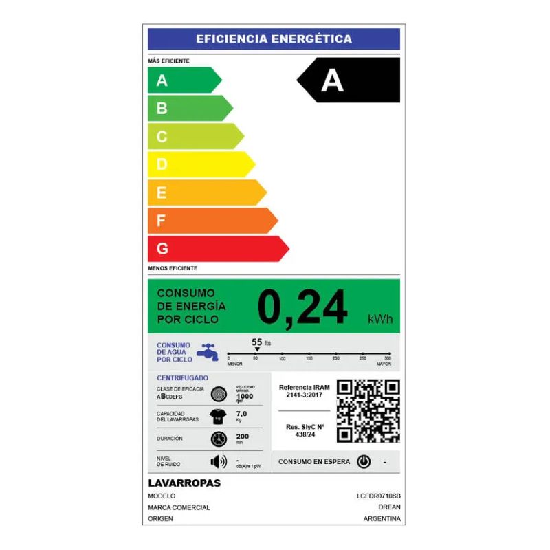 Lavarropa Drean Lcfdr0710Sb0 7Kgs C/Frontal 1000Rpm