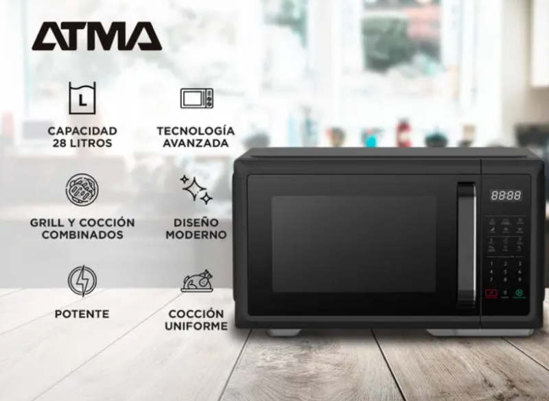 Microonda Atma Matdgb28Uap 28 Lts Digital C/Grilll Negro