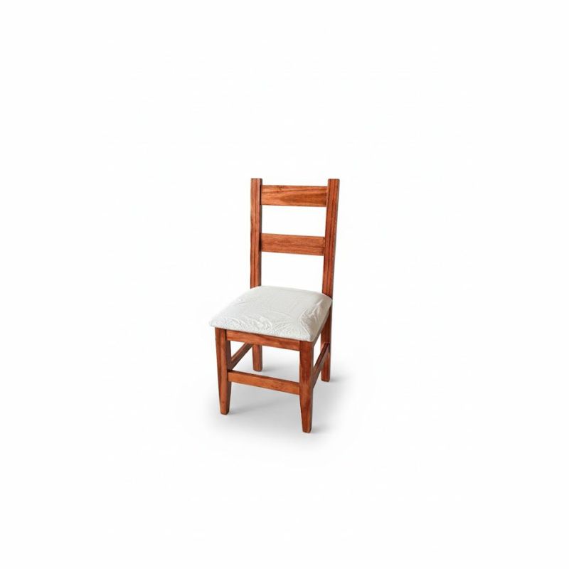 Silla de madera teñida en color cedro y lustrada. Tapizada en cuerina. Estructura convencional. Mayor comodidad a la hora de descansar.