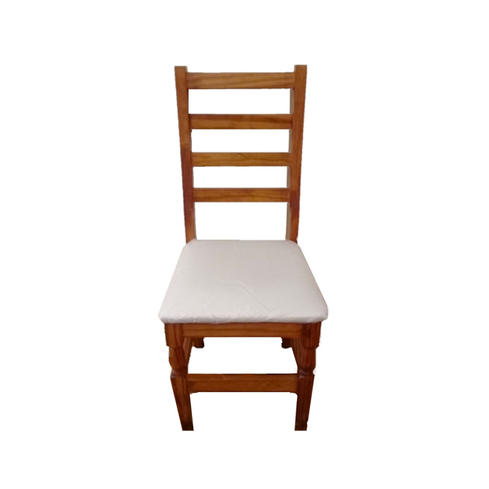 Silla de madera teñida en color cedro y lustrada. Tapizada en cuerina. Estructura convencional. Mayor comodidad a la hora de descansar.
