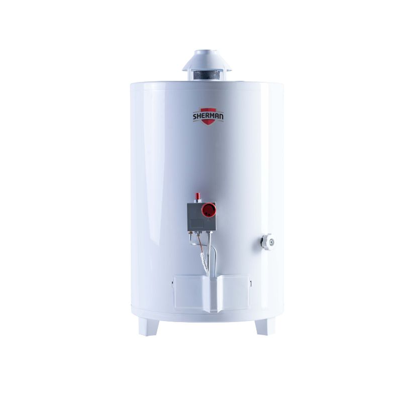 Sherman TEPG050 es un termotanque a gas con capacidad para 50 litros. A diferencia de un calefón, permite tener agua caliente sin depender de la presión general, aún con el uso simultáneo de varias canillas. Su sistema de aislación de poliuretano ecológico le da mayor vida útil y menos consumo de gas que otros equipos que utilizan como aislante la lana de vidrio. Puede utilizarse con gas natural o con gas envasado.Una válvula de seguridad (conocida como alivio) se activa si por algún motivo falla el termostato y la temperatura sube demasiado y genera vapor indeseado. De esta manera, se evita que el equipo se rompa y pueda causar un accidente. Por otro lado, a la hora de elegir un termotanque hay que tener en cuenta que se calculan aproximadamente 50 litros para 3 personas; 75 litros, de 3 a 5 personas; y 120, de 5 a 7 personas.